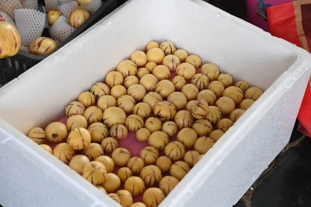 人参果又名长寿果,是一种营养价值较高的茄果类水果,其果肉清香多汁,腹内无核,风味独特,具有高蛋白、低脂肪、低糖等特点。据了解,该基地内的人参果种植全部采用有机肥,同时得益于人参果耐储存的特性,每一颗果实都保证在全熟时采摘。采摘后的人参果在基地内进行分拣包装,采取线上销售模式,通过物流送达千家万户的餐桌。